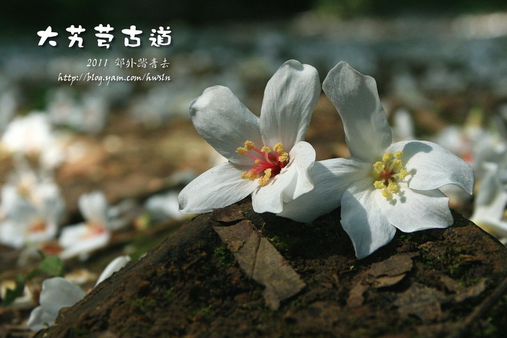 可能是它較平坦抑或是較少人行走,整體花量豐富不說,散佈均勻的落桐尚算鮮度十足~~難怪不管老的小的,一堆情侶檔總是喜歡在此合影留念...............原來浪漫桐花季是這樣子的感覺呢 ^ ^
