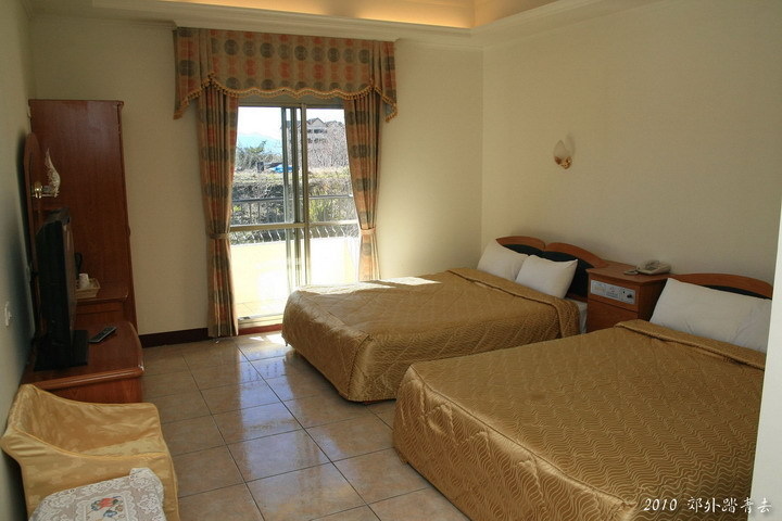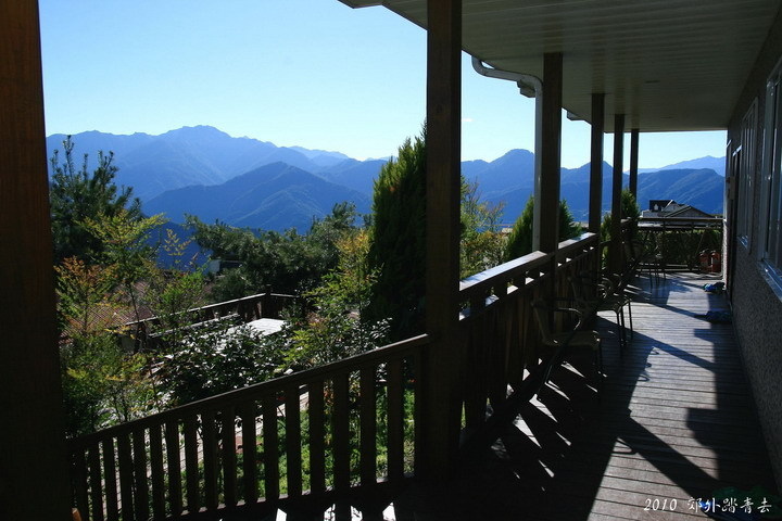 嗯.........精緻典雅卻不失靜謐幽然、擺設看似簡單卻應有盡有,站在窗邊即可遙望遠方白雪靄靄的合歡山頭,來到房外長廊盡頭便是二樓陽台,正是展望奇萊山美景絕佳之處,當夜住宿巧遇大雨,在這靜夜星空,聽著外邊陣陣雨聲對照不遠處再熟悉不過的7-11燈光、看著前方公路上在凌晨兩點的細雨中博鬥奮勇騎車往上爬的單車勇士們,好一幅奇特的景致.........