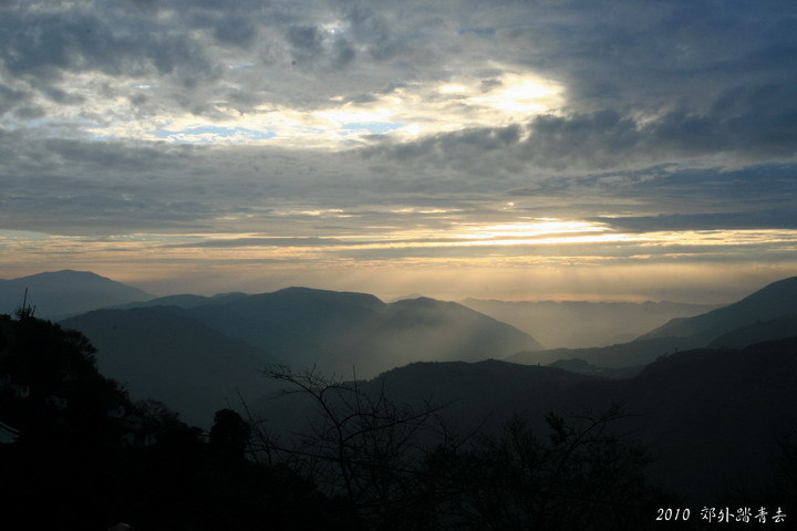 清境農場旅遊服務中心也是一處觀看太陽西下的好地點,雖然今日天候不佳,無緣得見夕陽餘暉映紅霞的奇幻美景,但有幸在此遠眺落日穿雲照群山,也是一種小小的幸福呢 XD