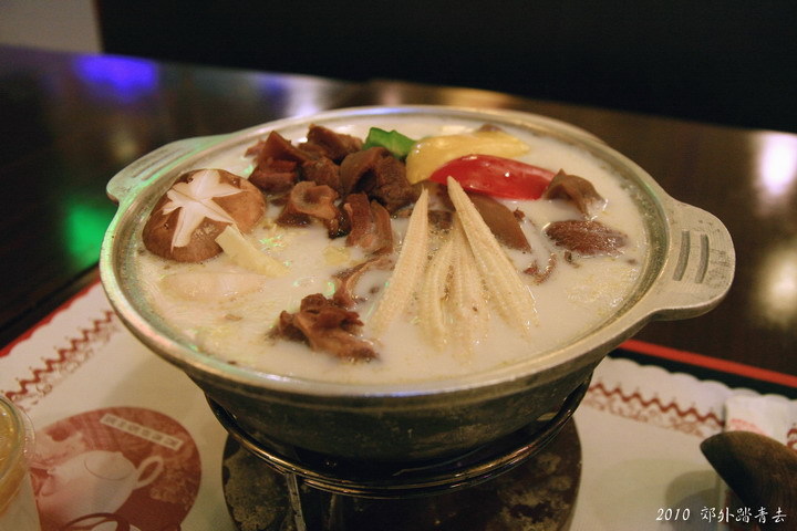 清境羊奶鍋~~不便宜耶!!相當於半張小朋友~~不過確實有這個價值,濃濃的羊奶香 full of 週遭(鍋底是清境的新鮮羊奶),羊肉塊量多且口感極佳(事先便用中藥加上獨門秘方處理過,超入味),其他配菜選得不錯(金針菇、野蕈、南瓜、花椰菜..........),剛好把羊肉的鮮美與羊奶的濃郁兩道主題給襯托出來~~