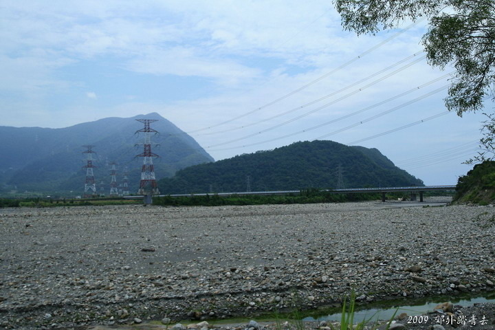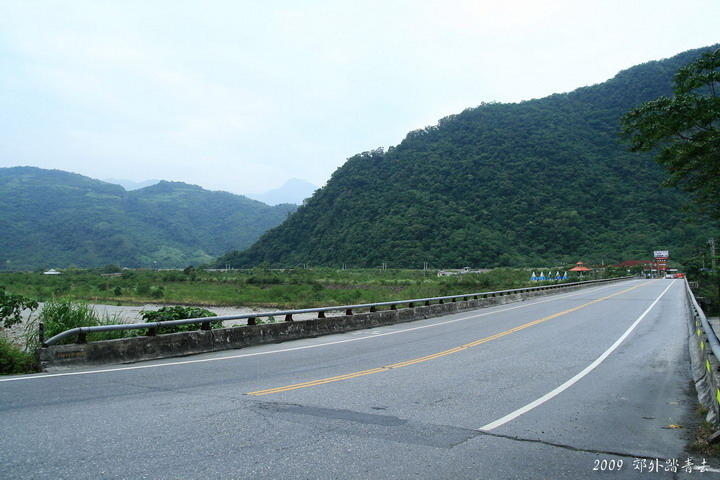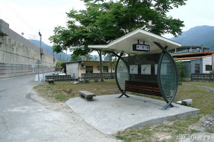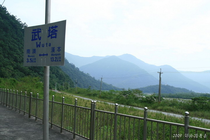 來到武塔社區的公車招呼站旁,遠方位於南澳南溪堤防上邊的不起眼小石塊就是著名的"莎韻紀念碑"~~