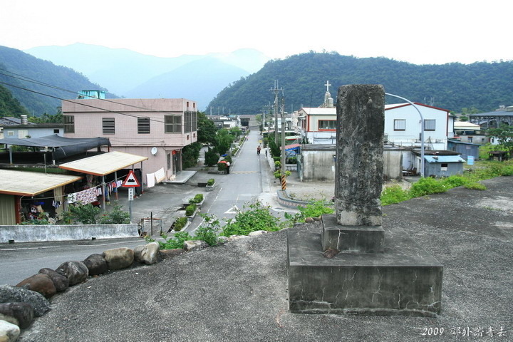 石碑側面隱約可見"昭和十三年九月二十七日遭難"字樣,日治時期象徵原住民皇民化愛國情操的紀念碑在戰後被刮除許多文字以致難以辨示,甚至被挖除棄置南澳南溪河岸,後來才由武塔國小李校長自費將其重立扶正,不知是有意還是無意,石碑剛好正對武塔社區最熱鬧的街道~~