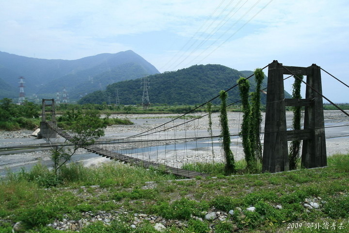 走在海岸大橋上,看到一旁奇特的吊橋遺跡,原是海岸大橋未開通前連絡娜娘與海岸兩地方的重要橋樑---海岸吊橋,全長500公尺,曾是台灣最長的車行吊橋,可惜早被颱風沖壞,木質橋樑部份保存還算完整,比起以前見過的那些只剩基座的吊橋遺跡好太多了,如能好好修復,觀光潛力十足哦~~