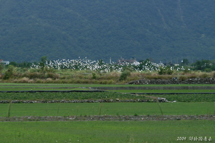 遠方白點陣陣,原來是群鳥飛舞,有點奇特的畫面~~