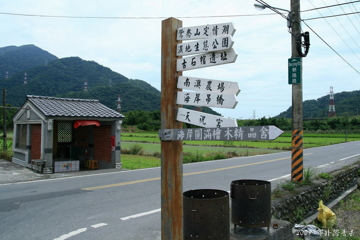 只好看看路標過過乾癮~~若是繼續往海邊會來到海岸景觀區,那裡因是位於南澳溪河口以南、澳尾山以北的海岸地區,地名就叫做"海岸",日治時期招募移民入墾而形成聚落,先前由新城溪下游遷至南方澳的猴猴社亦在昭和三年(1928)來此定居,不過當地名氣更大的是連綿數公里的神秘沙灘與傳說中的海蝕洞,聽說是開著沙灘車馳騁的好地點,今天就只是看看不過去了~~
