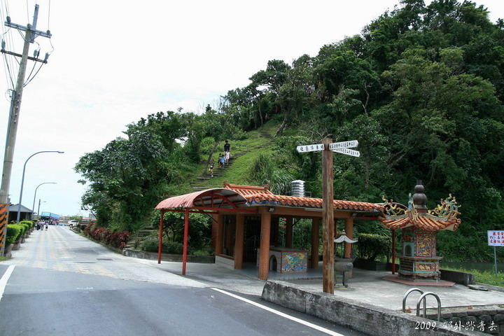 在快到朝陽漁港前會看到一間小土地公廟,便是朝陽國家步道的第三登山口,也是預計的起點,這裡人氣與第一登山口實在是差很多,人聲鼎沸、車流不息,還有不少小吃攤在營業,真可惜,應該把這裡當作終點才是 -_-