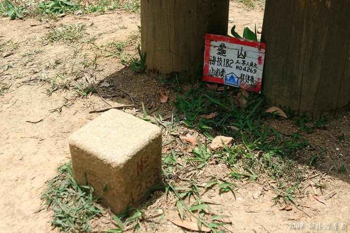 來到龜山頂,標高181公尺,有顆編號4269的三等三角點基石,根據解說牌的資料,同治七年(1868)引發大南澳事件的英國人荷恩來南澳探險時,便以龜山為據點;羅大春在開闢蘇花古道時也曾在此屯兵;劉銘傳在扺抗南澳泰雅族人時也曾架砲台於此,故此地又稱"砲台山" ?