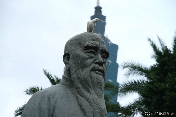 看著于右任雕像頭上站了一隻小鳥,趕都趕不走,令人莞爾的畫面 ^_^