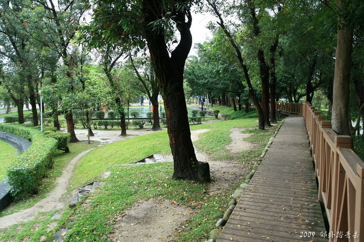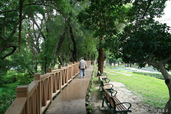 轉入錦州路,先到龍江公園坐坐,在台北類似這樣的小公園實在是非常普遍,通常都是老人家閒話家常的好所在,比起那些壯麗遼闊的公園綠地,來到這種地方反而感到比較親切呢~~