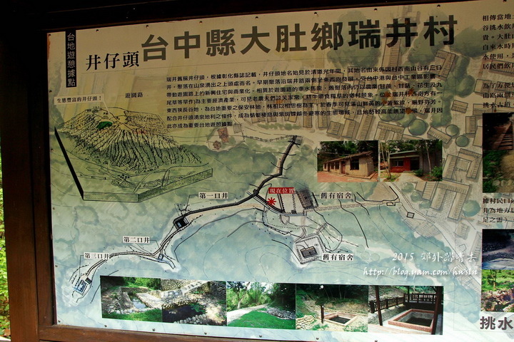 本來有些擔心找不到古井在哪裡,幸好有看到這幅地圖,不但有瑞井村的淵源介紹,還將三口井的的位置給清楚地標示出來,真是太好了,至少不會迷路啦 XD