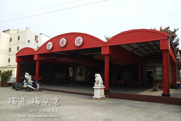 再度回到瑞井路,這次終於是來到了井仔頭瑞安宮,它是當地最重要的信仰中心,主祀媽祖,相傳當地先民林曰曾跟隨出身霧峰林家的林文察到中國大陸與太平大國激戰,當時迎來湄州媽祖神像隨軍出征,後於咸豐九年(1859)攜神像返鄉,由村中值年爐主祭拜,直到1978年才建廟奉祀,隔年入廟安座,同時供奉玄天上帝與王爺神像,因為廟內的天上聖母神像曾參與戰事,所以又有軍中媽之稱,由於廟埕寬廣,適合停車,非常適合開車來此地參訪的旅客們~~