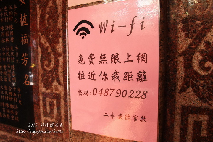 不過廟裡有wifi耶 !! 繼台南佳里子龍廟後,還能見到廟宇這麼有佛心來著,雖然小七的wifly就滿好用的,但坐在廟裡拿著手機發呆兼上網,也算是另類的體驗呀 ^ ^