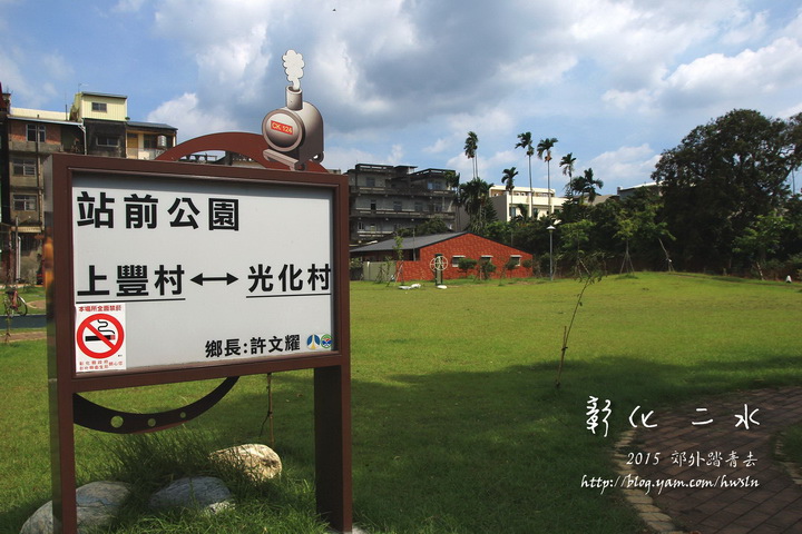回到二水火車站,轉進右側的光聖巷,經過站前公園(很優的綠地公園,適合帶小朋友發呆玩耍的好地方),再走沒幾步,就會來到這處蒸汽火車頭陳列場~~