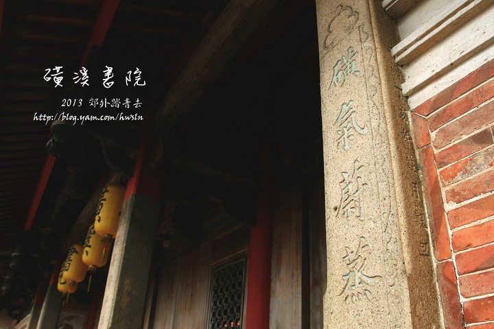 因為名為磺溪,所以裡邊的對聯大都是以"磺"、"溪"二字做開頭,以彰化的雅稱做為書院名稱,似乎有與白沙書院互別苗頭的意味(畢竟它們的名字都是彰邑別名);雖不曉得這些疑似泉州白石的石柱是仿製抑或百年古物,但有些小細節應該可以加強改進..............