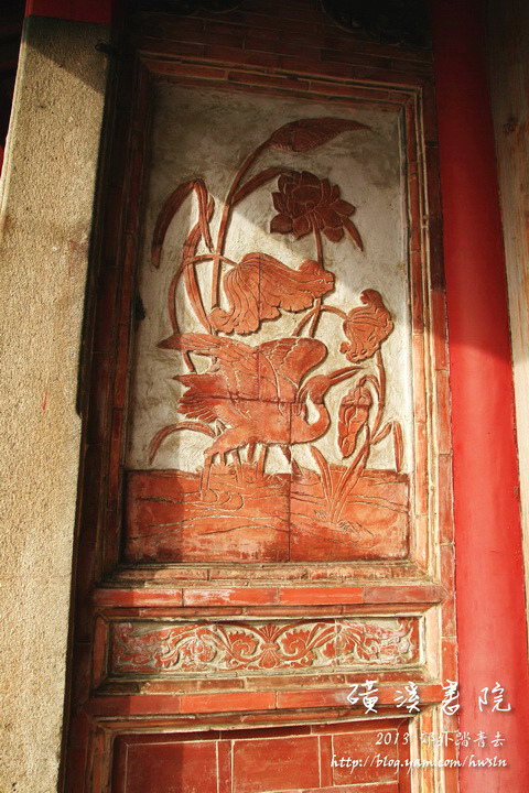 連這樣的小地方也能見到匠師們的巧心慧心,來到磺溪書院一遊,好似來到了一場磚雕藝術大展,每一個小角落都有著風格獨具的意外驚喜,讓人看了是目不暇給,新舊磚雕並列其中,嶄新的磚片上刻著複雜的紋路,與那百年前的工藝結晶各擅勝場,誰說新建的就不好,看了之後心情是一整個超Happy的呀 ^ ^