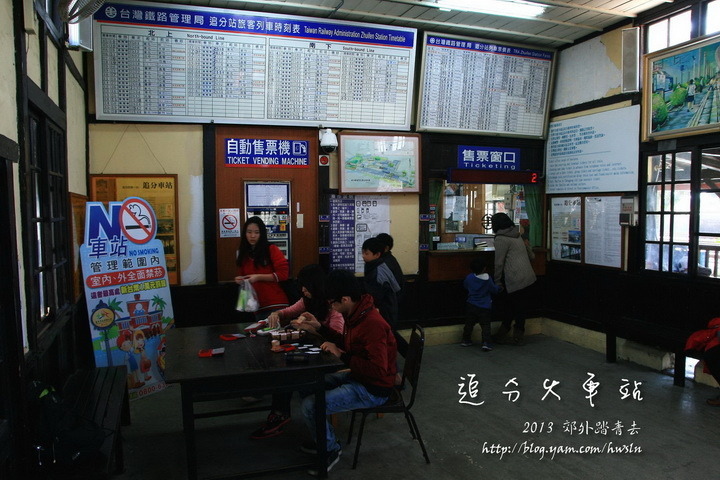 走進候車室,裡邊真是熱鬧非凡,正好有對情侶正努力地將桌上一堆與有關追分車站的印章一個接一個地印在簿子裡,真是好有意思的旅程記錄搜集,讓我看了都有些想躍躍欲試呢 ^ ^