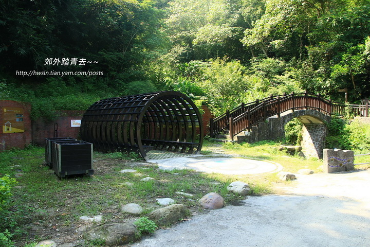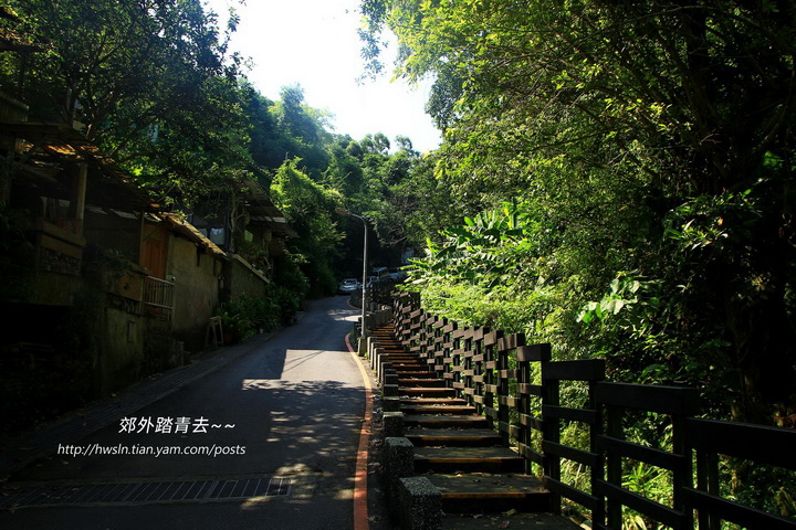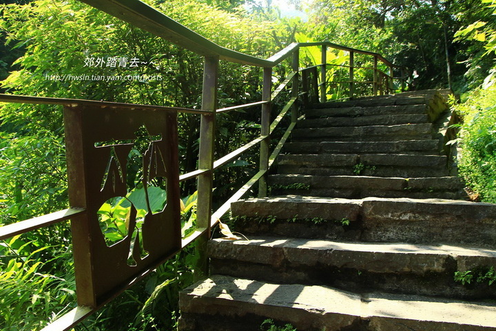 原來還要再走一段上坡路才會抵達入口,還好並不只是單純的柏油路,一旁還有木棧道可以拾階而上,伴著溪畔綠意向前行,悠遊在這信義區郊外的林蔭幽境,心情真是十分愉快 ^ ^