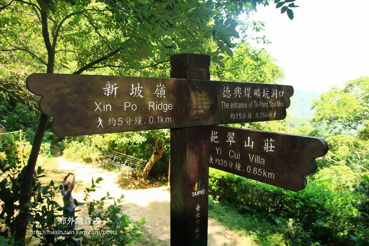 路標三選一,新坡嶺、挹翠山莊、德興煤礦皆有標示,就是不見糶米古道的名字 +_+