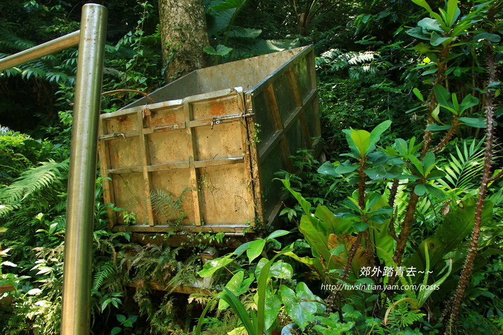 糶米公廟隔著步道對面是一處空地,可以踩在泥土地上的感覺還真讚,此地意外發現一個奇怪的東東,長得好像流籠車,有可能是當年改建廟宇時用到的運輸工具,看這樣子,似乎已是棄置不使用~~