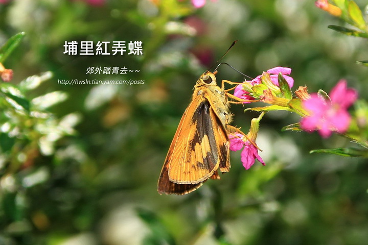 埔里紅弄蝶(竹橙斑弄蝶)雖然常見,但彼此體型差異甚大,看到它只想到上次在瑞芳龍潭山看到那隻超迷你的同名蝶兒~~