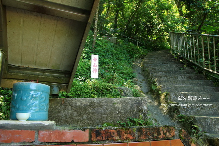 再往上走就是古道終點,正在準備啟程時看到祭拜老山神的牌位......老山神 ? 為何還要加"老"字 ? 尊稱 ? 敬語 ? 另外還有一位年輕的 ?