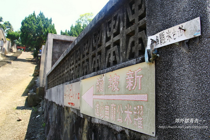 先前在吳興街那裡有看到一座大坡福德祠,然後這裡叫做新坡嶺,這些地名由來在德興煤礦入口那裡都有介紹,"坡"的真正身份是"陂",意指灌溉用的水塘,當年三張犁盛產稻米,充沛的水源自然不可少,新陂的名字是相對舊陂的稱呼,這些昔日的水塘隨著時空推移而消失,要不是有看到解說,還真以為新坡嶺與這處山坡有關~~