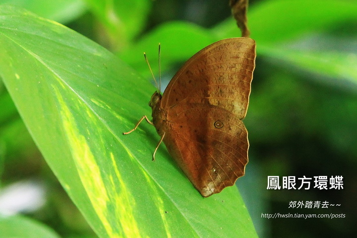 崇德街雖是墓區道路,但也頗具原始風味,好多自然生物紛飛其中,翩翩飛舞的蝴蝶自然也沒缺席這場戶外盛宴,隨隨便便就見到臺灣三線蝶(細帶環蛺蝶)與鳳眼方環蝶(方環蝶)的身影,哈哈~~其實是只拍到這兩隻,其它蝶兒都不理我 >_<