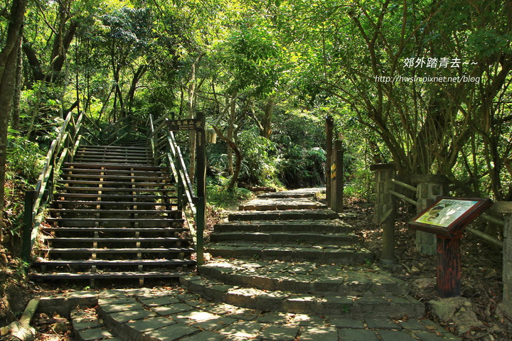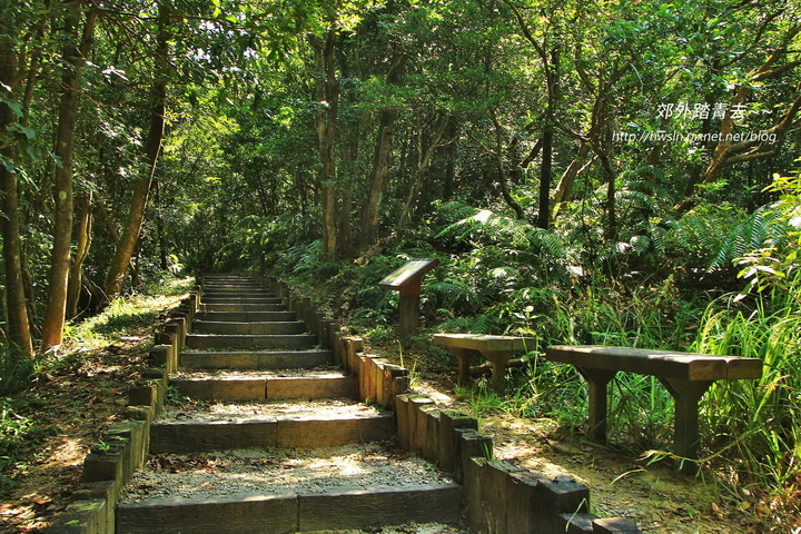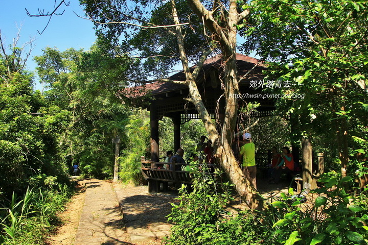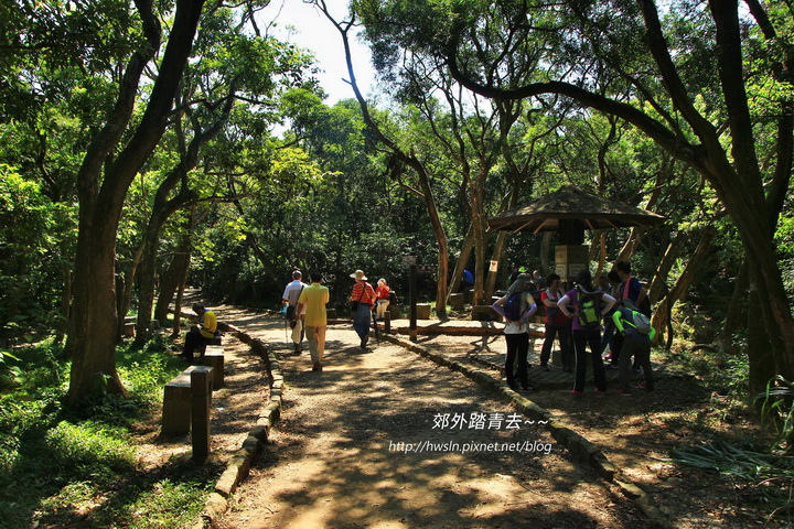 比起拾階而上的人工化路線,這種踩踏泥土、漫步林間才真的有縱走山林的fu,可惜一下就走完,來到一處人潮聚集的空地,已有不少遊客在此泡茶聊天歇息,位置確實不錯,亦是欣賞風景的好地點~~