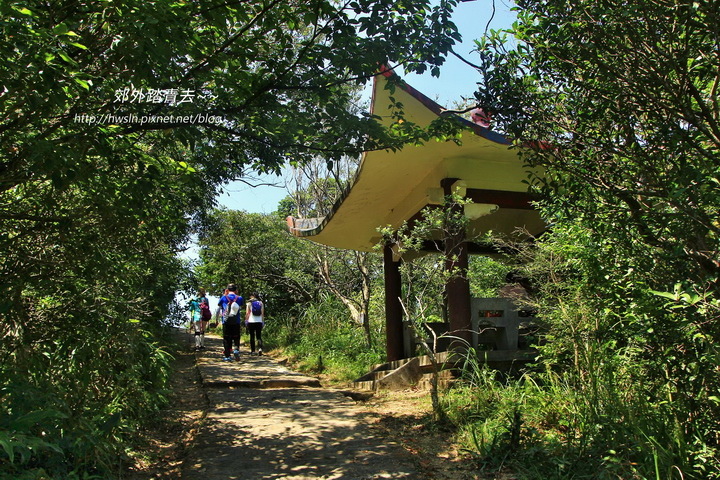 即將抵達山頂的時候發現右邊有座涼亭,一直很好奇它的存在,因為就算大崙頭山的涼亭超大、視野亦佳,但還是會有不少人會坐在這裡休息,人氣還不低,絲毫不受隔壁就是山頂平台的影響~~