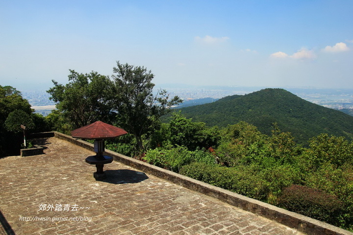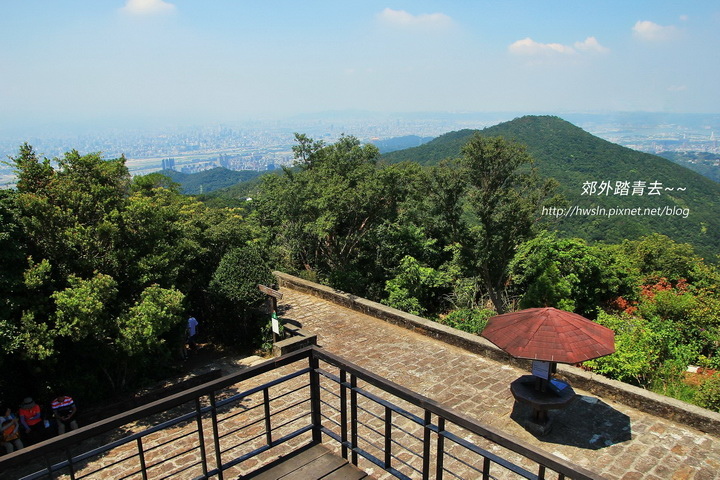 難怪這麼搶手,上邊視野還真是極佳,遙望台北市區,包含圓山飯店在內的都市風情盡收眼底,橫亙在前方的大崙尾山超級顯眼,想到剛剛還待在那,從這裡到那來回走好幾趟,身體一定會變得很健康 !!
