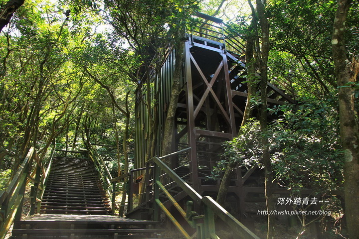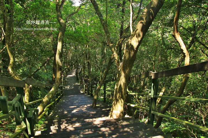 這段步道最大的特色就是與森林樹木共存,不時可見林木穿木棧道間,行走其間還得左閃右避,從以前到現在都是此地風格獨具的景觀~~