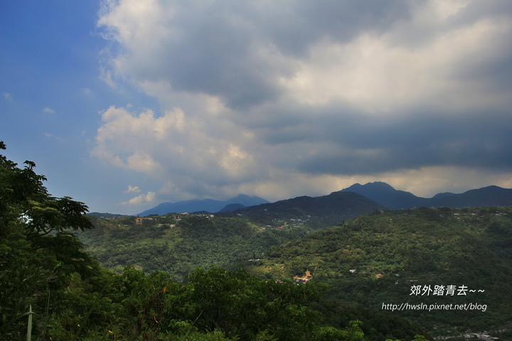 遙望淡水河流域的平原景觀,還有觀音山到七星山之間的丘陵起伏,中間還有許多熟悉的小山頭,士林到北投間的山林景致,怎麼看都是那麼地令人著迷~~