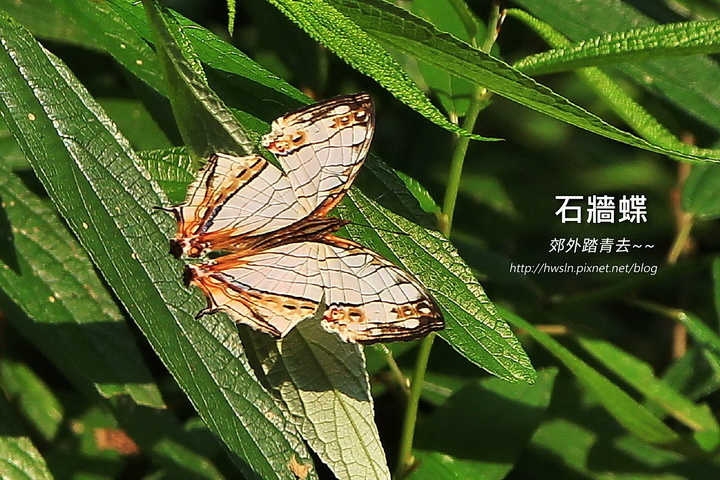 石牆蝶(網絲蛺蝶)也是很郊外常客,每次看到都覺得不管是新名還是舊名,都與它的外型很貼切呀 !!