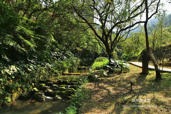 下方那道河應該就是小坑溪,河濱並非冷硬無情的水泥護岸,而是更符合原始風情的堆壘石塊,週遭草木隨意生長,很順眼的fu~~