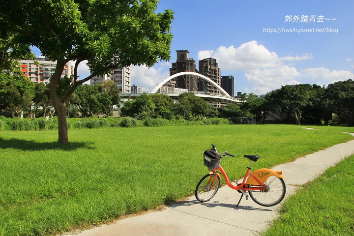 華江橋北邊綠地超寬廣的,雖然華中橋週遭空間也是不小,但這裡不僅更大而且明顯較原始自然,河岸青青偶有幾株大樹點綴,城市喧囂聲仿若離這兒很遠,享受縱橫山河之間的暢然快意,可謂今次單車之最讚的一段行程 ^ ^