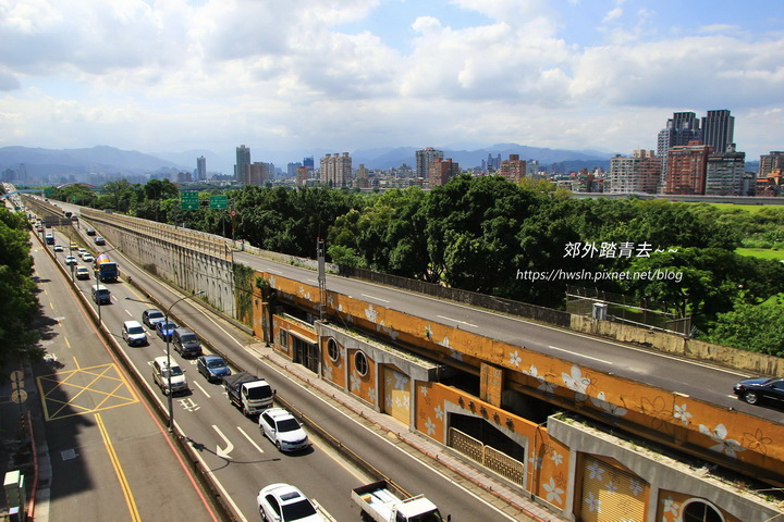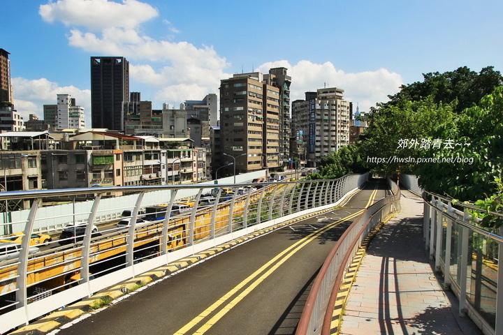 過了福和橋,看到水管橋,代表永福橋就在不遠處,水源快速道路依舊傲然挺立,總覺得這樣的視覺反差是很有意思的畫面~~
