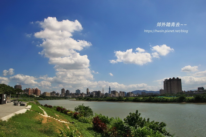 一邊是茵茵河畔、旁側是巍巍高樓,循著護欄邊走一遭,台北城都市河濱景致盡收眼底,這個地點選得真好,不論從哪個方向看,都讓人神清氣爽~~