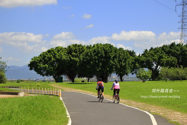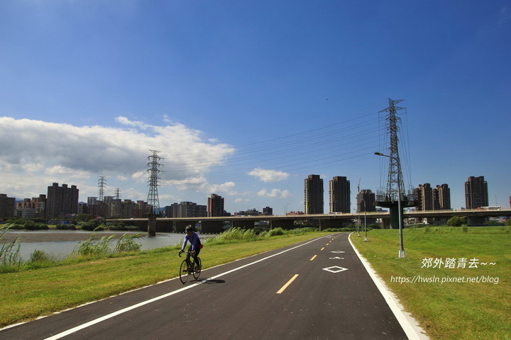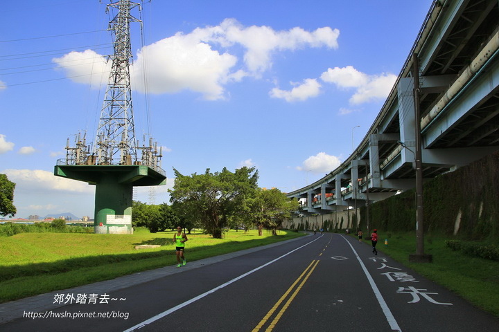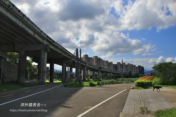 依著路標指示來看,這個地方應該是福和河濱公園,同樣屬於新店溪右岸自行車道,但在過了雙北市界交會處之後,整個視野與景觀就變好多,讓人深刻感受到此地是漫步堤外便道的fu,人氣也頗高,不少民眾在此跑步,也在人在這溜狗,散步人潮亦是熙熙攘攘,還有多不勝數的各式球類運動場地,縱然沒有遼闊空間,這般活潑氣息,才真的是那種屬於台北的休閒氛圍~~~
